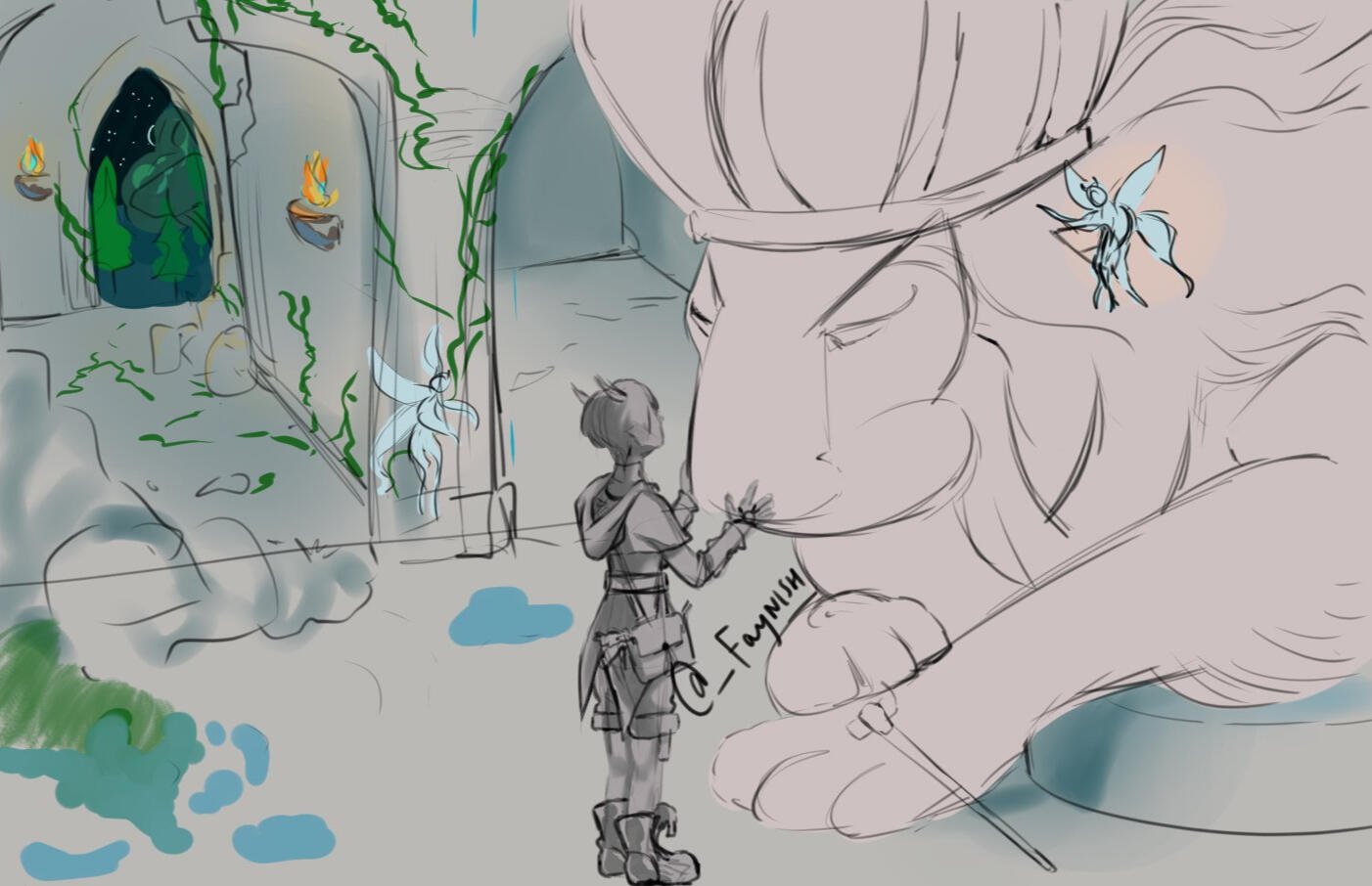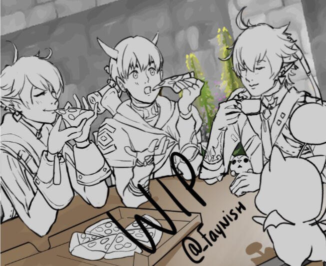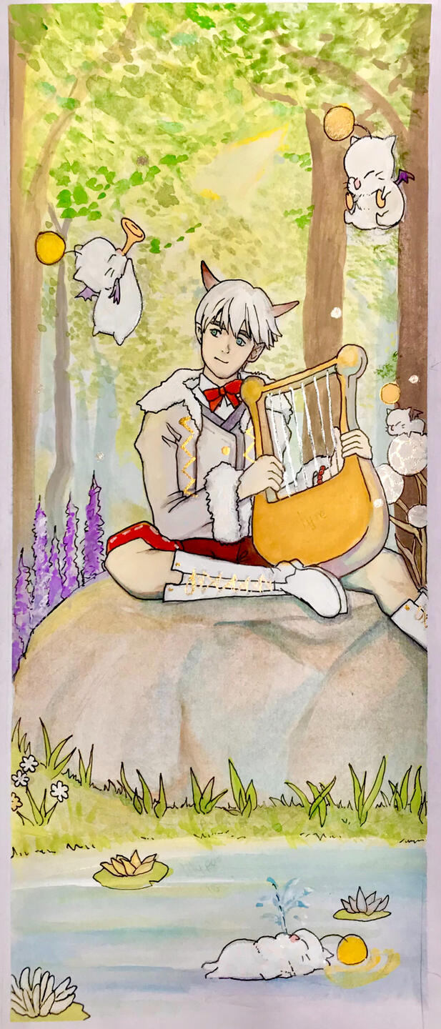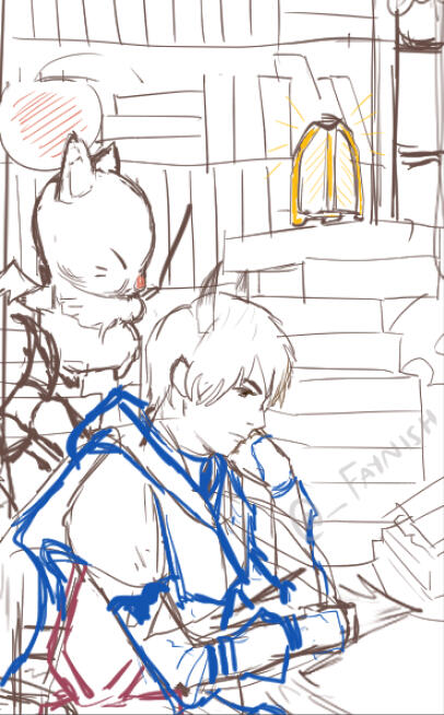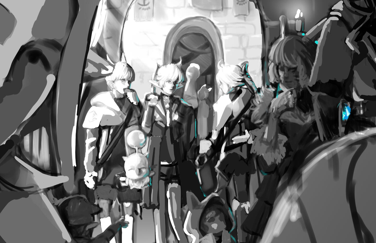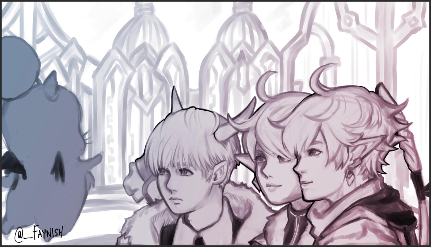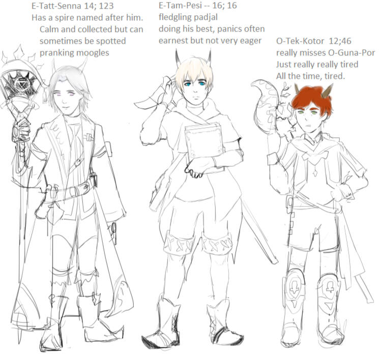 “He’s a good boy,” Dart said, his rough hands firm on Sunny’s shoulders. “Hard-working. Whip-smart. You’ll help him, won’t you?”Sunny stared at the boy in front of him. He knew this small conjurer was his mother’s kin, that this uncle was somewhere closer to his forties than the nine or ten years of age he seemed. But the black-tipped white horns atop his head had kept him young. They matched the horns that had grown in on Sunny’s own head, though Sunny’s were hidden hastily beneath a leather cap. The others passing through Quarrymill wouldn’t even notice him.O-App-Pesi looked back at him, his startling purple irises perhaps the second most unusual thing about him at first glance. He offered a smile. Sunny tried to return one of his own, but it fell a little flat. It was disconcerting to see someone who looked so much younger than you, but was in fact as old as your own father.O-App-Pesi had a young, calm, clear voice when he spoke. It reminded Sunny of the cool river passing through Hyrstmill, bubbling but gentle, that Sunny would sink his feet into during the hotter moons.“Rest assured, Master Gladdows, it would be my honour and my privilege to escort the late Cordelia’s child to the Fane,” O-App-Pesi said soothingly. “That he has come into his heritage so late is a matter most unusual… though not unheard of. Our own Elder Seedseer is of a similar experience. However…”Dart’s hands tightened on Sunny’s shoulders as O-App-Pesi trailed off.“However?”O-App-Pesi blinked, glancing slowly from father to son.“However, padjal claim kinship only with each other, in order not to inspire doubt in the veracity of any Elemental hearings. After all, a claim of personal bias could cast the entire order beneath a shroud of doubt. Such is why most padjal are brought to the Fane from birth.”But Dart was at a loss.“...Da?”“...Speak plainly, master padjal, I beg of ye. We’re but simple folk, and don’t ken too much of that fancy embellishin’.”“Very well. Henceforth, Sunny Gladdows shall remain Sunny no more ー nor you, his father. Would that it were not so, but I’m afraid it’s long since too late to turn back; the boy’s lot was cast the moment the Elementals deigned to choose him for their own.”Sunny felt the blood rushing to his ears. What? His da?! And this was all the fault of the Elementals?! Sunny thought they were supposed to be kind! And helpful! Dart’s grip on Sunny’s shoulders tightened further. Sunny turned to look up at his father’s stubbled chin. “Da…?”But his uncle was still talking.“Come, I shall give you time to say your goodbyes while I see to readying a carriage to Gridania,” he was saying. Sunny could feel the blood rushing in his ears. “No doubt Brother E-Sumi is already aware of young Sunny’s awakening, and is making ready to receive him.”Thump-thump went Sunny’s heart. No. No. First he saw things, heard things, witnessed terrible portents. Then a splitting headache had resulted in horns growing from his head. He’d already lost his mother. And now…?But O-App-Pesi only said: “Do take your time, though not too long. The ixal have been growing bolder come nightfall, this past moon.”And then he was gone, swept up by the crowd of Quarrymill’s bustling occupants, waiting for their own passage to be approved or denied. There were more types of people here than Sunny had ever seen in any other place before, and now he too was one of the stranger ones.“Da,” Sunny tried again for the third time. He shrugged off his father’s hands and turned to face him, only to be swept up in a warm hug that nearly crushed him.“Sunny. My Sunny, my little sunshine. My boy. You’re gonna be okay, y’hear?”Sunny clutched the back of his father’s leather vest ー one that Sunny had tanned and stitched himself, just this year.“Da, I don’t hafta go. I can just keep wearing a hat,” he bargained, staring wide-eyed at the roughshod embroidery of his father’s lapels, cheek smushed against his father’s chest. “Who’ll help y’at the shop if I’m all the way in Gridania?”“You know you gotta,” Dart gruffed against the top of Sunny’s head, pressing a kiss to the top of Sunny’s cap. The leather crinkled against his horns and crushed the bright, white hair underneath. “Don’t worry about yer da’s old shop. You’re gonna do such great things, Sunny. You’re gonna help so many people.”Sunny pulled away to look up at his dad, witnessing the sorrow and pride in equal measure there. The uncertainty and shock Sunny had felt faded away and a wet film passed over his eyes. “Daー”“Ah, ah,” Dart said, smiling wryly and giving Sunny’s cap an affectionate toss of his hand. “I’ll always be yer father, Sunny. But ye might as well get used to callin’ me Dart, eh? You can do it. You’re nearly a man grown yerself, anyroads. Sixteen and all! Ye don’t need yer old da. Ye need schoolin’. Trainin’. Protection. I can’t give ye that, back in Hyrstmill.”Sunny scrubbed a hand over his eyes quickly.“Who’d have thunk,” Dart was still saying, a hint of wonderment in his voice shining through. “My Cordelia, her Pesi blood comin’ through after all, even after all that nay-sayin’. Y’always did take after her more.”Sunny promptly lost the battle to hold back his tears and threw himself into the arms of Dart Gladdows.They held each other in silence for a while. It felt like hours. It felt like seconds. But far too soon, O-App-Pesi was back.“Your carriage is ready, young Sunny.”Sunny pulled away from his faー from Dart and glanced over at his uncle. A chocobo carriage had pulled up nearby, though still a little out of the way. Two other kids Sunny’s age were already on it, apparently well-settled in already and napping; Sunny noticed no horns were atop their twin heads. A merchant was hoisting crates of goods onto the same cart, and quickly blocked Sunny’s